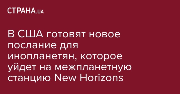 В США начался сбор средств на отправку еще одного послания инопланетным цивилизациям с помощью межпланетной станции NASA New Horizons, передает канал NBC.