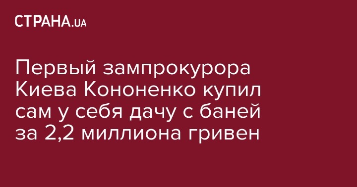Первый зампрокурора Киева Павел Кононенко задекларировал в приобретениях дачный дом и баню за 2 млн 218 тыс. 500 гривен. Об этом свидетельствует информация из Единого государственного реестра деклараций.