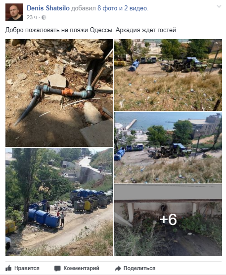 Одесский пляж Аркадия утопает в мусоре. Фотографиями курорта поделился журналист Денис Шацило на своей странице в Facebook.