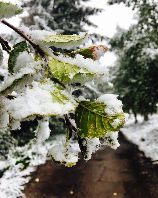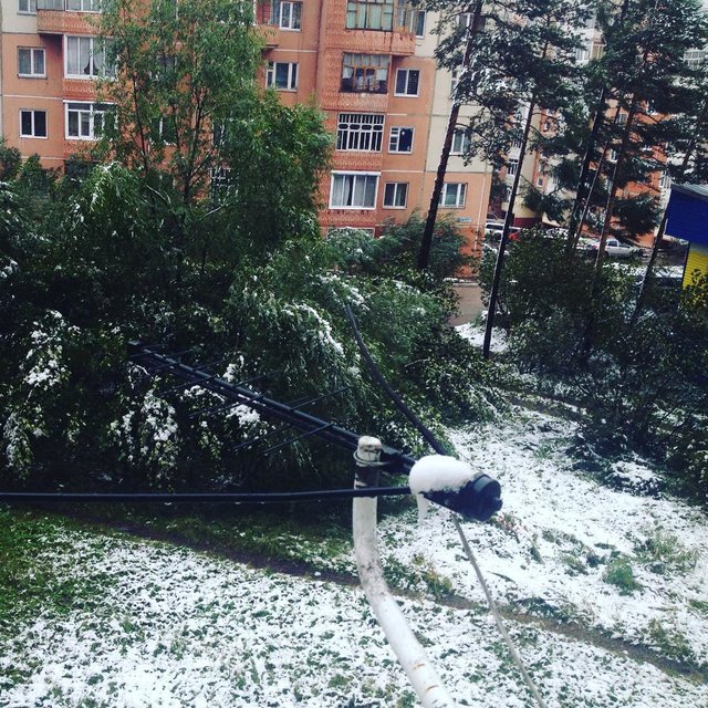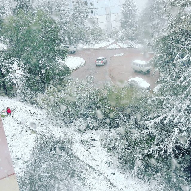 На снимках видно, что засыпало практически весь город. На улицах мало людей, а транспорт почти не ходит. В сети люди грустят, что лето так быстро ушло.