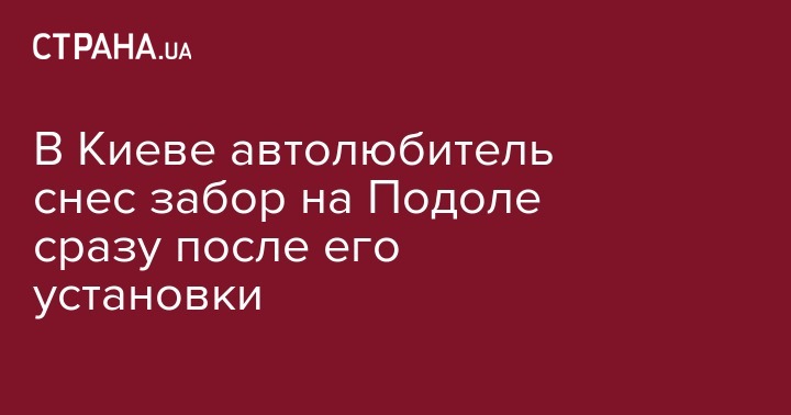 В Киеве автолюбитель снес забор на Подоле сразу после его установки