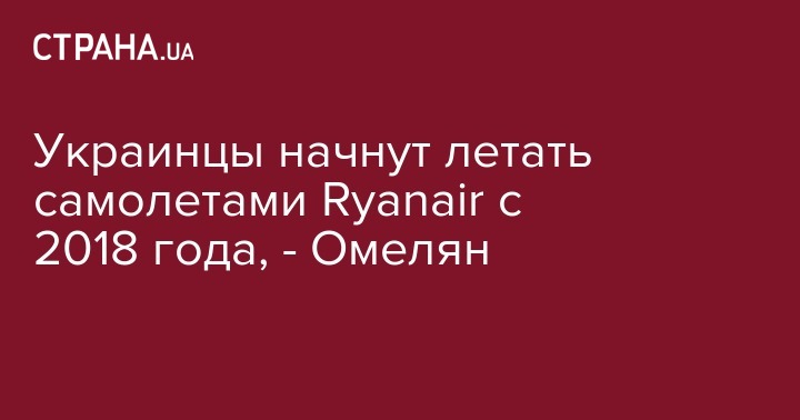 Министр инфраструктуры Владимир Омелян сообщил о начале полетов крупнейшего лоукост-авиаперевозчика Европы компании Ryanair (Ирландия) из Украины в 2018 году. Об этом сообщают "Украинские Новости".