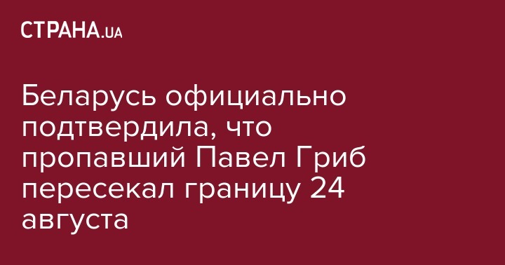 Беларусь официально подтвердила, что сын офицера Госпогранслужбы Украины Павел Гриб, который уже несколько дней как пропал, действительно пересекал государственную границу с Беларусью 24 августа. Об этом сообщил официальный представитель Государственного пограничного комитета Беларуси Антон Бычковский, передает БелТА.