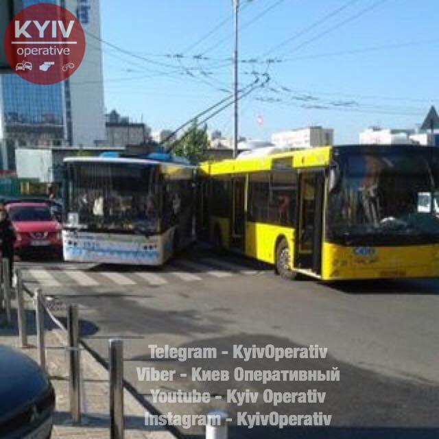 В центре Киева на повороте с Жилянской на Шота Руставели столкнулись троллейбус и автобус. Об этом сообщает "Киев Оперативный" в Facebook.