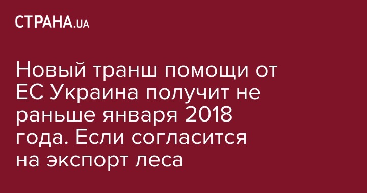 Новый транш помощи от ЕС Украина получит не раньше января 2018 года. Если согласится на экспорт леса