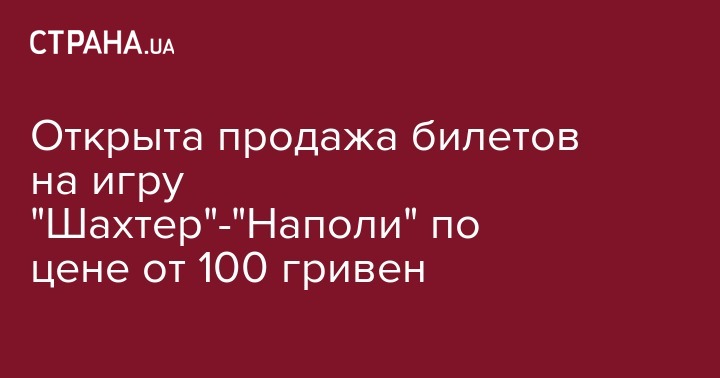 Сегодня, 3 сентября, стартовала продажа билетов на матч 1-го тура группового этапа Лиги чемпионов между "Шахтером" и "Наполи". Об этом сообщает официальный сайт горняков.