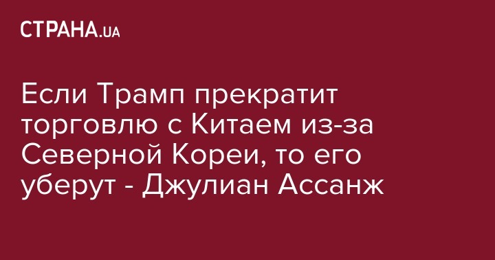 Если Трамп прекратит торговлю с Китаем из-за Северной Кореи, то его уберут - Джулиан Ассанж