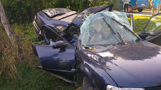 22-летний водитель автомобиля Volkswagen Passat не справился с управлением и, съехав в кювет, врезался в дерево. В результате аварии молодой водитель с травмами госпитализирован, а его дедушка, который находился в салоне иномарки, получил телесные повреждения несовместимые с жизнью.