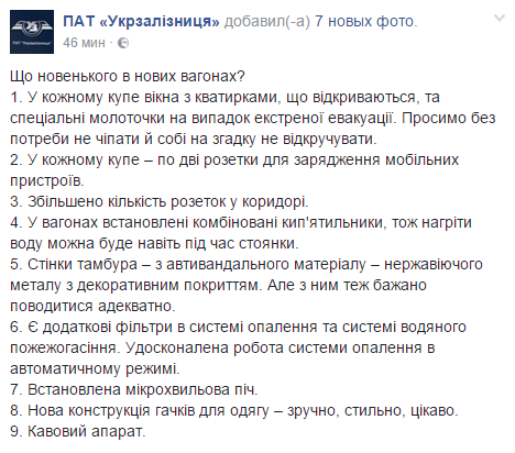 "В целом уже в этом году "Укрзализниця" начнет разработку проекта нового вагона будет соответствовать международным современным стандартам и требованиям и будет отличаться от того подвижного состава, к которому мы привыкли. При благоприятных обстоятельствах пассажир увидит новый вагон через 1,5-2 года", - заявил член правления ПАО "Укрзализниця" Сергей Михальчук