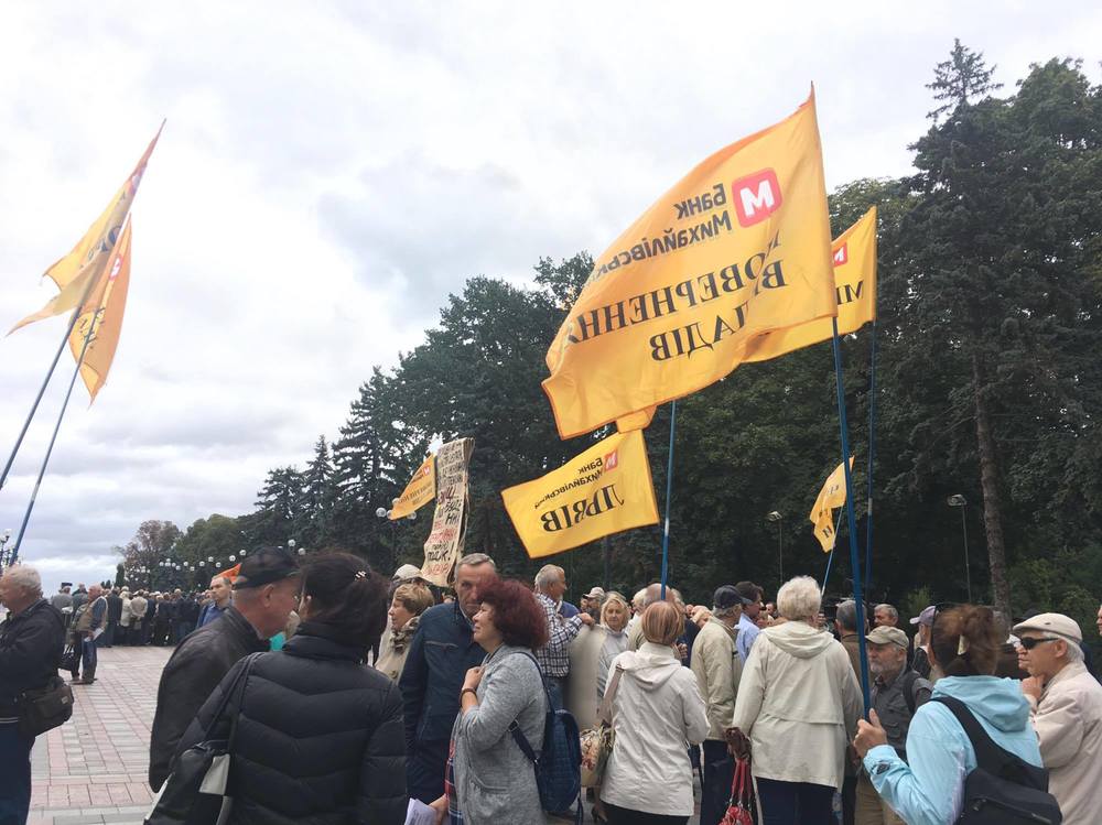 Как сообщил корреспондент "Страны", под здание парламента пришли и обманутые вкладчики банка "Михайловский", их около ста человек.