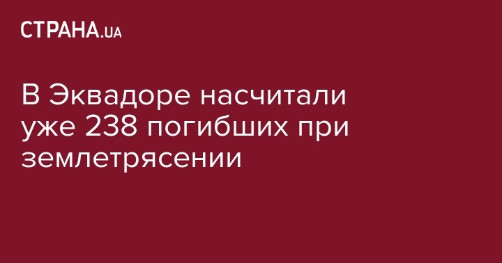 Министерство по управлению рисками Эквадора сообщило, что количество погибших в результате мощного землетрясения выросло до 238 человек, информирует мексиканский ресурс El Financiero.