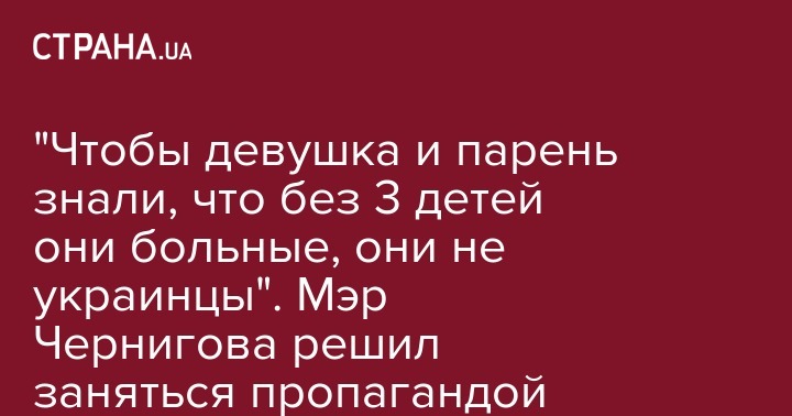 "Чтобы девушка и парень знали, что без 3 детей они больные, они не украинцы". Мэр Чернигова решил заняться пропагандой рождаемости