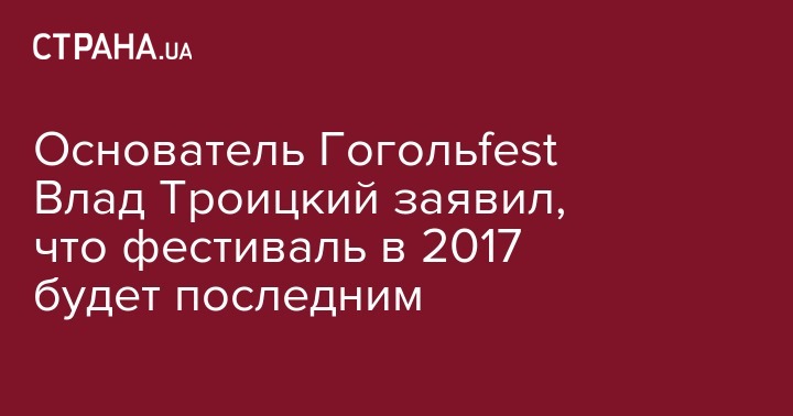 Мультидисциплинарный международный фестиваль современного искусства Гогольfest 2017, скорее всего, станет последним. Такое заявление сделал в интервью Сultprostir.ua директор фестиваля, режиссер и художественный руководитель театра "Дах" Влад Троицкий.