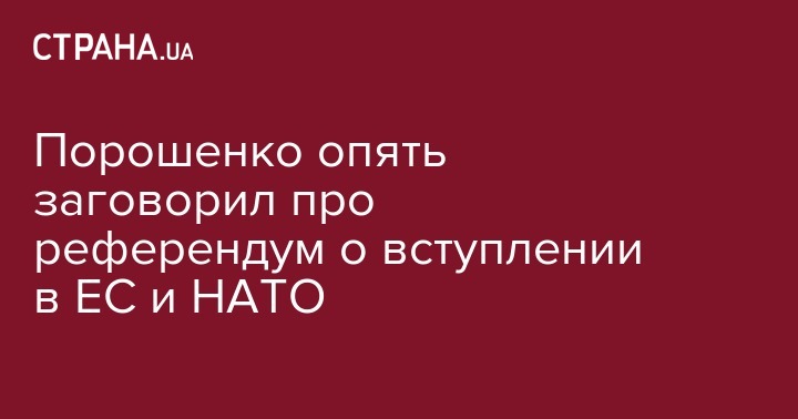 "Опросы показывают, что большинство украинских граждан поддерживают вступление в ЕС и присоединение к НАТО. И я не исключаю, что в положенное время я инициирую соответствующий референдум, чтобы продемонстрировать волю украинского народа всем, и нашим друзьям, и агрессивной соседке, и всем украинским политикам", - сказал Порошенко.