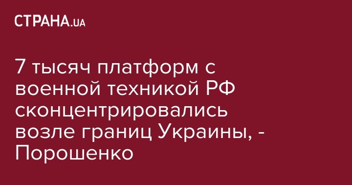 К Украине под видом военных учений приближаются 7 тысяч платформ с российскими солдатами и техникой. Об этом заявил президент Петр Порошенко во время выступления в Верховной Раде Украины.