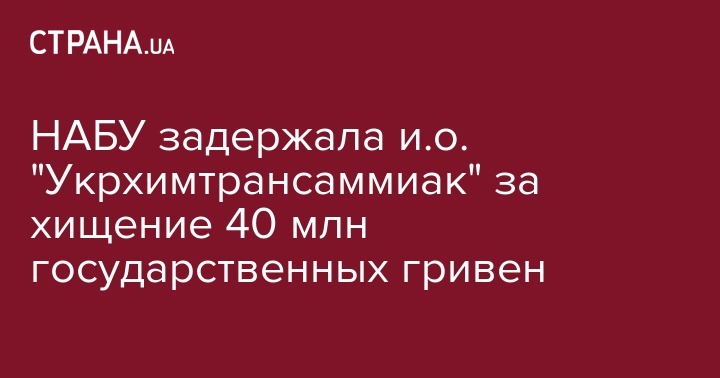 Детективы Национального антикоррупционного бюро (НАБУ) задержали исполняющего обязанности директора государственного предприятия "Укрхимтрансаммиак" (Киев) за хищение бюджетных средств в размере 40 млн гривен.