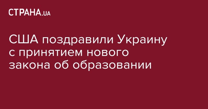 Посольство Соединенных Штатов Америки поздравило Украину с принятием нового закона об образовании.