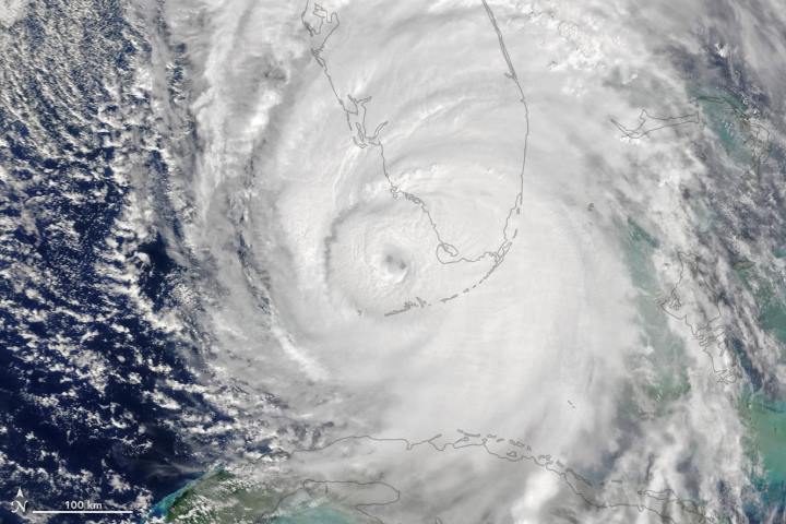Ураган Ирма сняли со спутника в тот момент, когда он ударил по Флориде. Об этом передает NASA.
