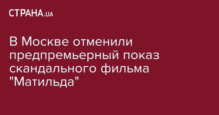 В московском кинотеатре "Иллюзион" отменили запланированный на 11 сентября предпремьерный показ фильма Алексея Учителя "Матильда". Объявление о том, что показ отменен по техническим причинам, появилось на сайте кинотеатра.