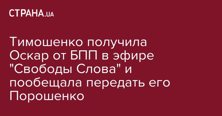 Лидер партии "Батькивщина" Юлия Тимошенко получила "Оскар" в прямом эфире "Свободы слова".