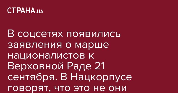 В соцсетях появились заявления о марше националистов к Верховной Раде 21 сентября. В Нацкорпусе говорят, что это не они