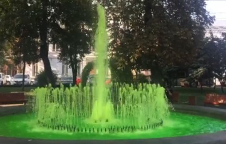 В Киевском парке из фонтана забила зеленая жидкость. Видео