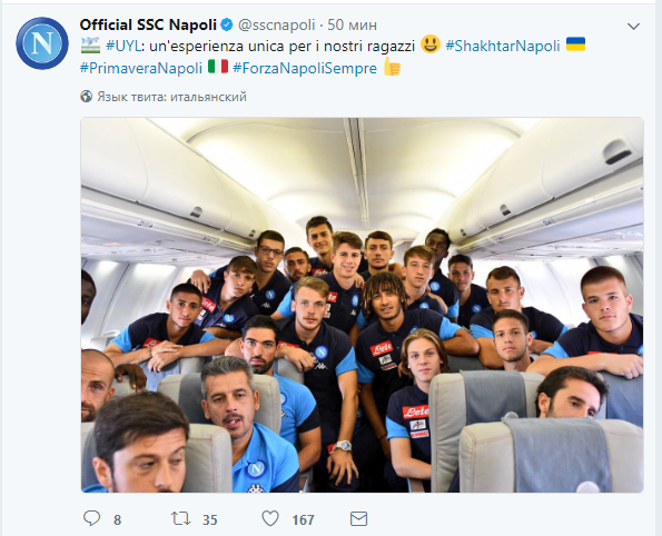 Появились фото, как футболисты "Наполи" летят на встречу с "Шахтером"