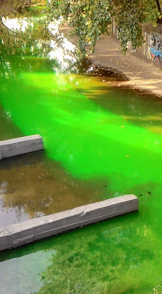В Киеве вчера, 12 сентября, вандалы не только покрасили в ярко-зеленый цвет воду в фонтанах на Майдане и Подоле, но и даже реку Лыбидь. Об этом говорится в сюжете программы ТСН.