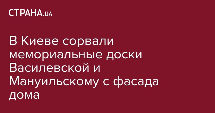 В Киеве сорвали мемориальные доски Василевской и Мануильскому с фасада дома
