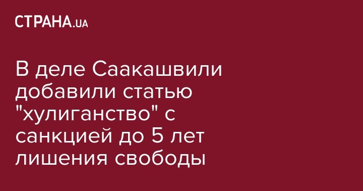 Как сообщала "Страна", к обвинению Саакашвили добавили уголовную статью. Ему грозит до 2 лет тюрьмы.