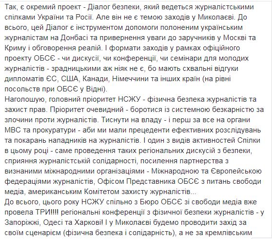 Глава НСЖУ говорит, что его организация проводит в Николаеве дискуссию именно о физической безопасности журналистов, а "Диалог безопасности" является отдельным проектом, который ведется журналистскими союзами Украины и России.