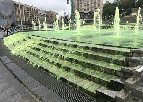 В Киеве вандалы-"футуристы" насыпали краску в каскадный фонтан на Майдане Независимости и его вода стала зеленой. Коммунальщики вынуждены временно прекратить работу фонтана. Об этом сообщили в пресс-службе "Киевводфонда".