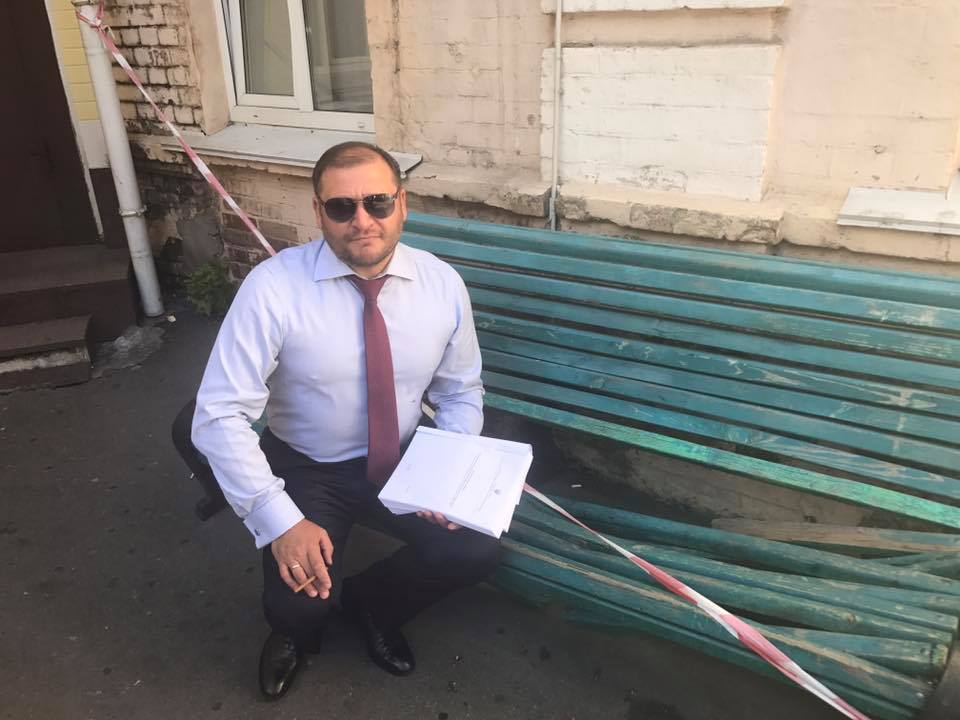 Нардеп Михаил Добкин, с которого сняли неприкосновенность по делу Генпрокуратуры, показал поломанную лавочку возле Печерского суда Киева. Фото он выложил на Facebook и сопроводил снимок ироничным комментарием.