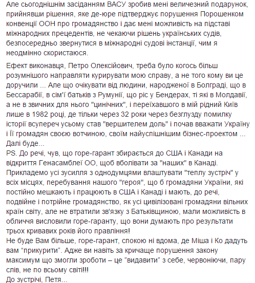 Как сообщала "Страна", ранее лишенный гражданства Артеменко Саакашвили меня  его в МихоБас.
