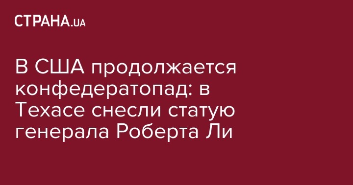 В США продолжается конфедератопад: в Техасе снесли статую генерала Роберта Ли