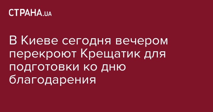 В Киеве сегодня вечером перекроют Крещатик для подготовки ко дню благодарения