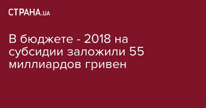 В бюджете - 2018 на субсидии заложили 55 миллиардов гривен
