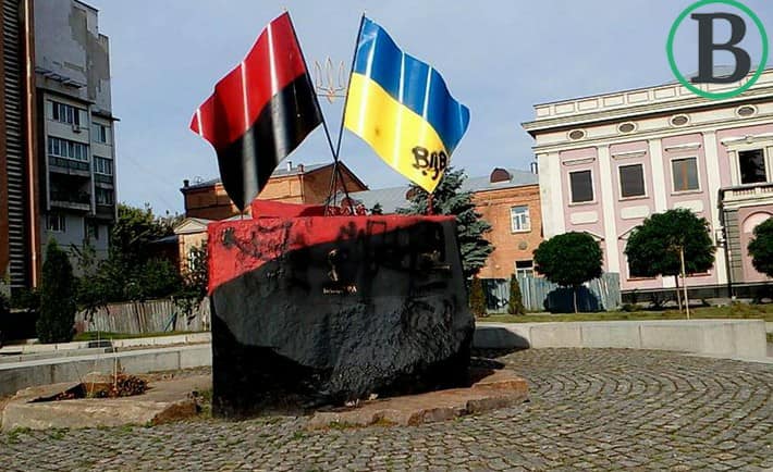 В Черкассах на памятнике Бандере и Шухевичу нарисовали свастику и надпись "ВДВ"