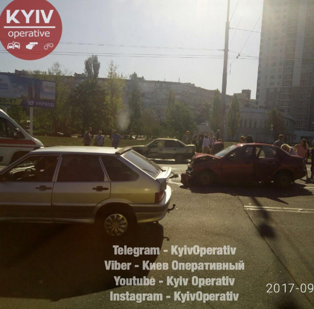 В воскресенье, 17 сентября, около полудня на проспекте Соборности в Киеве произошло лобовое ДТП. Об этом в Facebook сообщил "Киев Оперативный".
