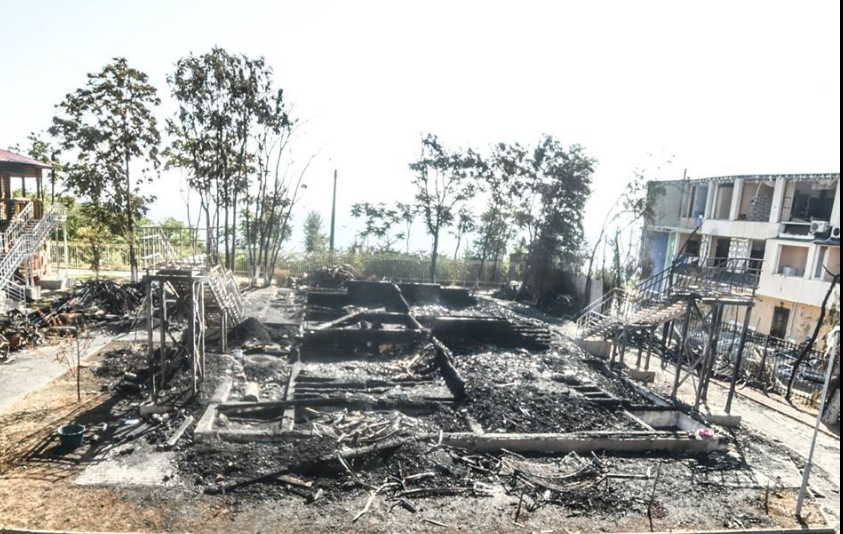 Спустя сутки после пожара, во время которого погибли трое детей, одесситы несут цветы и игрушки к месту их гибели в оздоровительном лагере "Виктория".