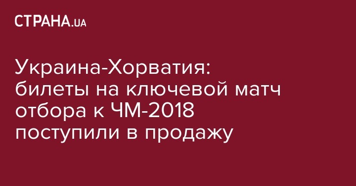 С сегодняшнего дня поступили в продажу билеты на ключевой матч квалификации Чемпионата мира ФИФА 2018 между национальными сборными командами по футболу Украины и Хорватия. On-line продажа билетов на сайте e-sport.in.ua