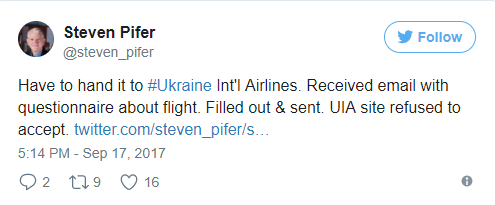Пайфер воспользовался рейсом 423 Украинской компании, чтобы посетить конференцию "Ялтинская европейская стратегия" в Киеве. Очевидно, что он остался недовольным.