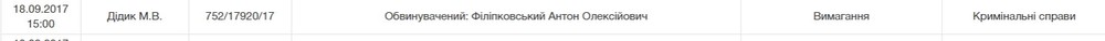 Исходя из озвученной в суде информации, запланированные на сегодня четыре судебных заседания (включая дело Филипковского), где отправлять правосудие должен был Николай Дидык, а также еще шесть слушаний, намеченные на 19 сентября, будут сняты с рассмотрения.