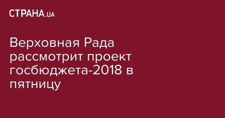 Верховная Рада рассмотрит проект госбюджета-2018 в пятницу