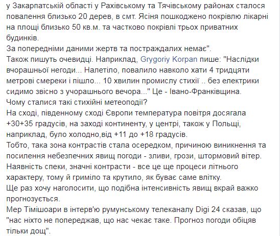"Почему произошли такие стихийные метеособытия? На востоке, юго-востоке Европы температура воздуха достигала +30 +35 градусов, на западе континента, в центре, а также в Польше, например, было холодно, от +11 до +18 градусов. То есть, такая зона контрастов стала центром, причиной возникновения и усиления опасных явлений погоды – ливни, грозы, штормовой ветер. Наличие жары, значительные контрасты – все это еще процессы летнего характера, поэтому и гремело и крутило, как бывает именно летом", – поясняет синоптик.