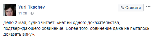"Нет ни одного доказательства, подтверждающего обвинение. Более того, обвинение даже не пыталось доказать вину", - процитировал судью Юрий Ткачев.