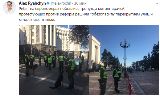 По его словам центр Киева перекрыт из-за митинга медработников.