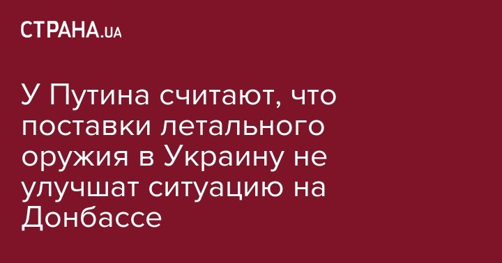 У Путина считают, что поставки летального оружия в Украину не улучшат ситуацию на Донбассе