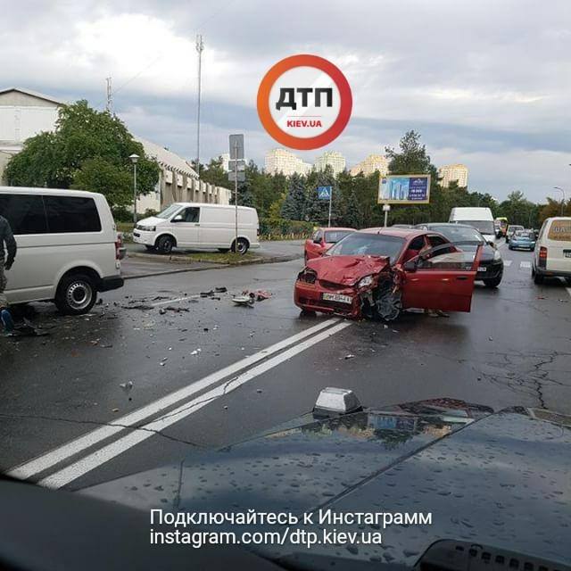 Сегодня в Днепровском районе Киеве случилось лобовое столкновение Shevrolet и Volkswagen. Об этом сообщает портал dtp.kiev.ua на Facebook-странице.