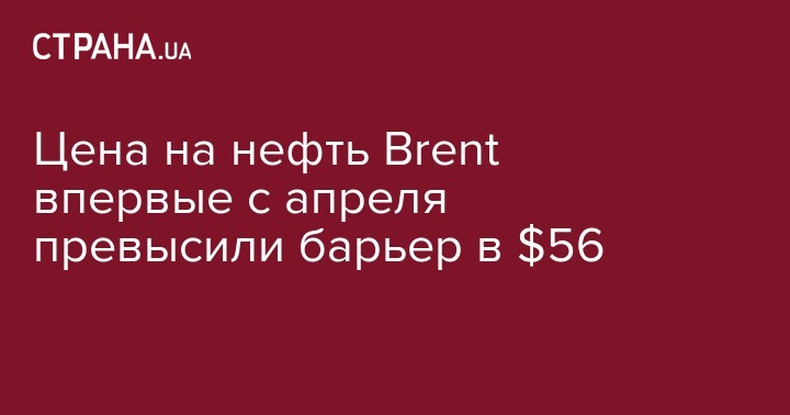 Стоимость барреля Brent достигла отметки в 56,24 доллара на бирже ICE впервые с середины апреля 2017 года. Об этом сообщает "Интерфакс".
